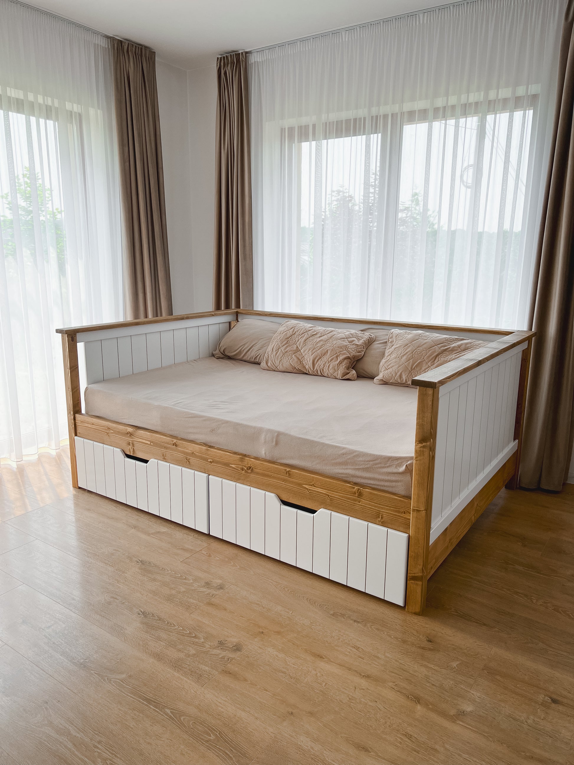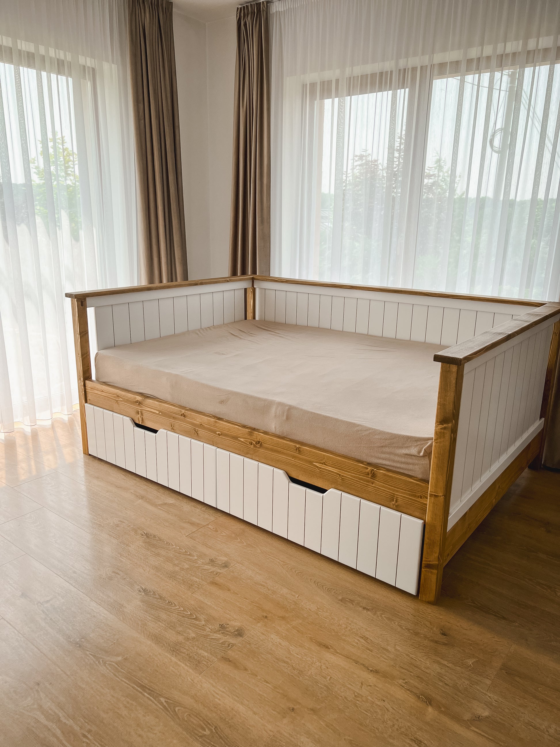 Divanul cu sertare se poate realiza pentru o saltea cu dimensiunea 90x200 cm, 120x200 cm, 140x200 cm sau o saltea cu dimensiunea 160x200 cm.